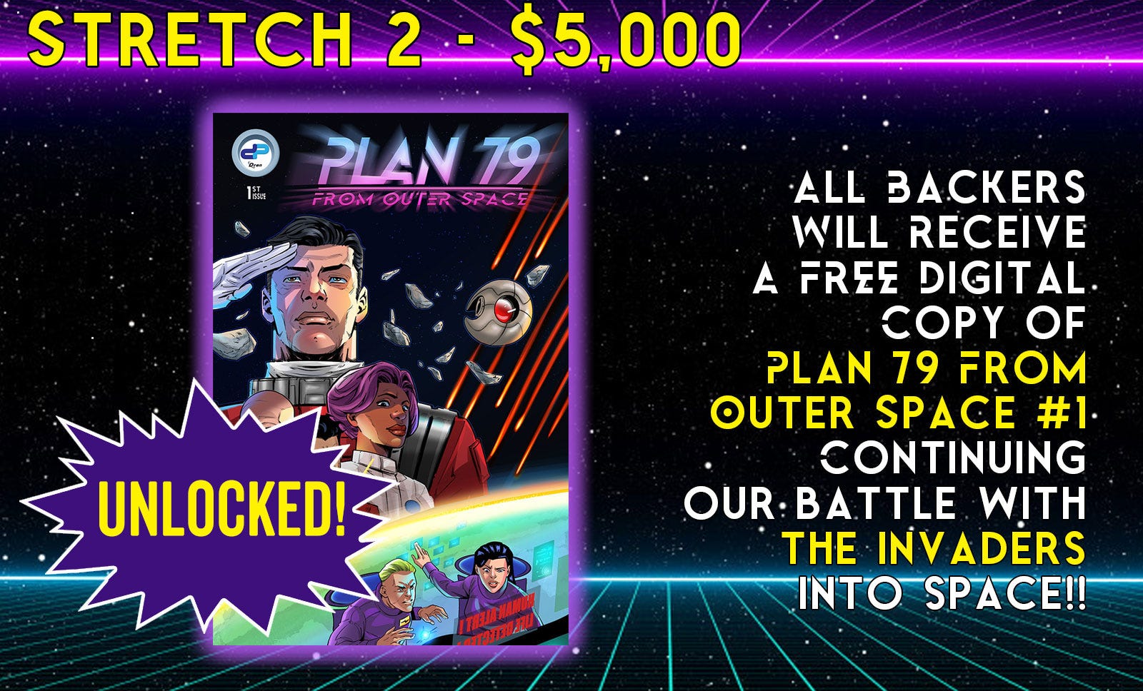 Meanwhile, we are less than 24 hours away and at the time I write this we just unlocked our second stretch goal for Plan 59 From Outer Space: A free digital copy of its sequel: Plan 79 From Outer Space #1
