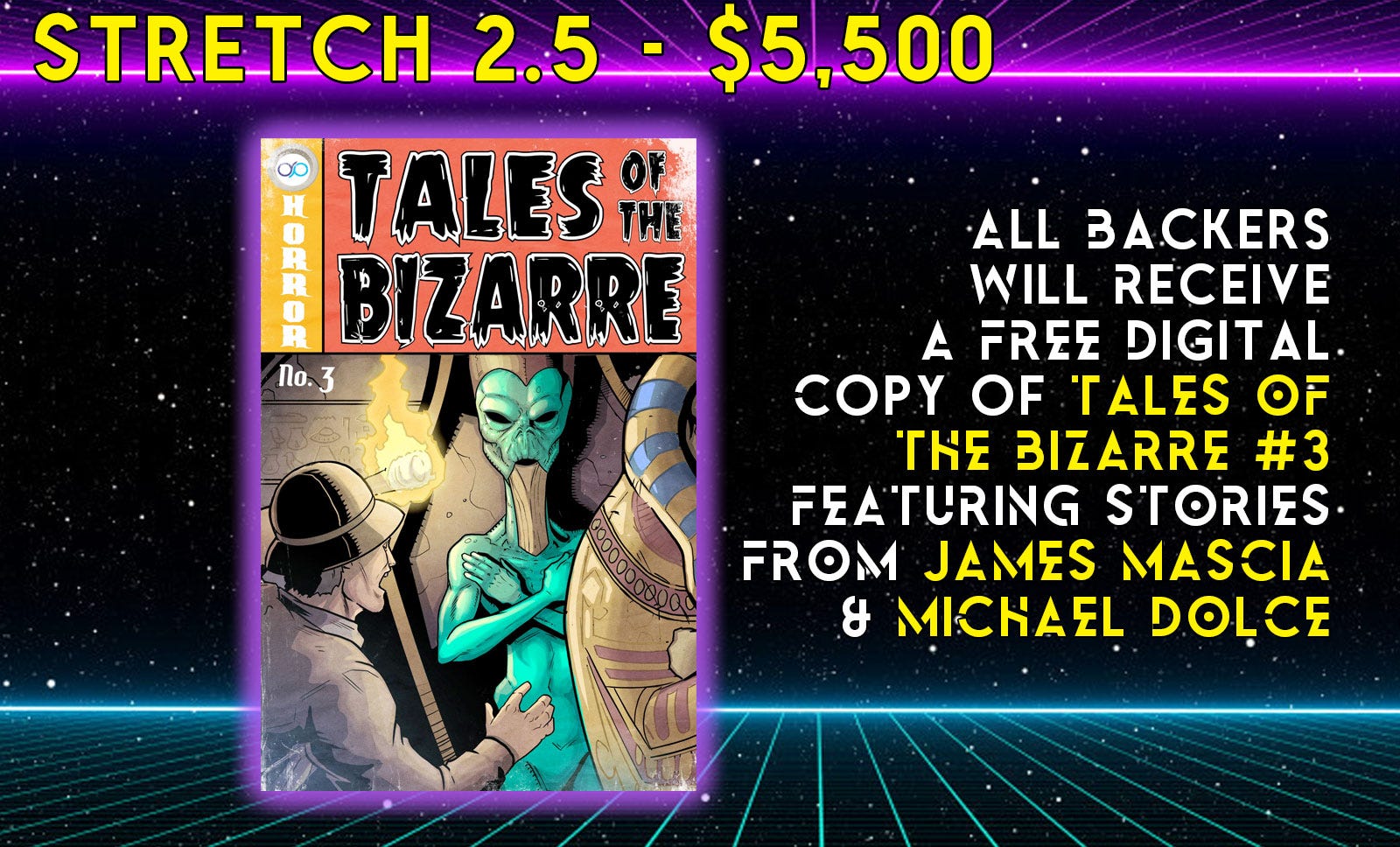 Which means we’re proud to announce Stretch Goal 2.5! If we cross $5,500 all backers will receive a FREE Digital Copy of TALES OF THE BIZARRE #3 featuring stories from PLAN 59 writers James Mascia & Michael Dolce: